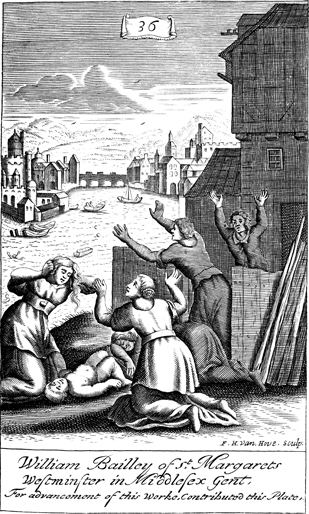 Description: All the Israelite male infants are thrown into the Nile River at Pharaoh's decree. The name of the engraver, Frederick Hendrick van Hove (1628-1698), has been set at the foot of the image, and as the numeral at the head of the page indicates, this is plate #36 in a series of illustrations.