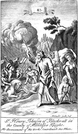 Description: As Moses and Israel stand safely on the shore, Pharaoh's army is drowned in the Red (Reed) Sea. The engraver’s name, Michael van der Gucht (1660-1725), has been set at the foot of the image, and as the numeral at the head of the page indicates, this is plate #42 in a series of illustrations.