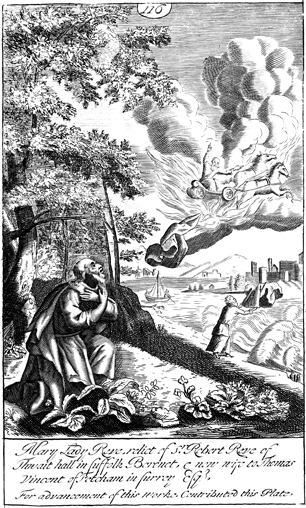 Description: Elisha receives Elijah's mantle upon seeing him taken to heaven in a chariot of fire. Elisha parts the water with the mantle he received from Elijah. As the numeral at the head of the page indicates, this is plate #116 in a series of illustrations.