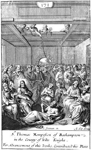 Description: The paralytic is lowered before Jesus from the roof above. The names of the artist, G. Freman, and the engraver, Johannes Kip (1653-1722), have been set at the base, and as the numeral at the head of the page indicates, this is plate #171 in a series of illustrations.