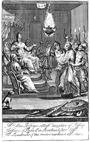 Description: Jesus is tried before the Sanhedrin at night. The names of the artist, G. Freman, and the engraver, Johannes Kip (1653-1722), have been set at the base, and as the numeral at the head of the page indicates, this is plate #204 in a series of illustrations.