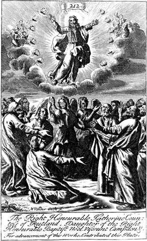 Description: Jesus ascends into heaven in the presence of his disciples. An angel assures the disciples that he will return in the same manner. The name of the engraver’s name, Michael van der Gucht (1660-1725), has been set at the foot, and as the numeral at the head of the page indicates, this is plate #212 in a series of illustrations.