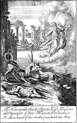 Description: The witnesses are killed by the beast and then resurrected to be taken into heaven. The names of the artist, B. Lens, and the engraver, Johannes Kip (1653-1722), have been set at the base, and as the numeral at the head of the page indicates, this is plate #229 in a series of illustrations.