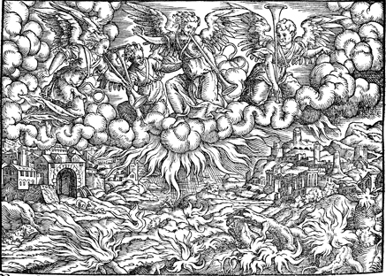 Description: An angel sounds the first trumpet, bringing hail mixed with fire and blood upon the earth.