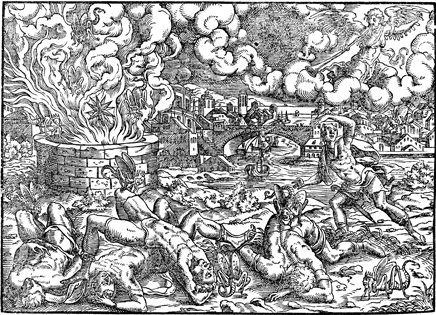 Description: An angel sounds the fifth trumpet, causing a star to fall from heaven and open the Abyss, allowing locust-like creatures to prey upon the earth.