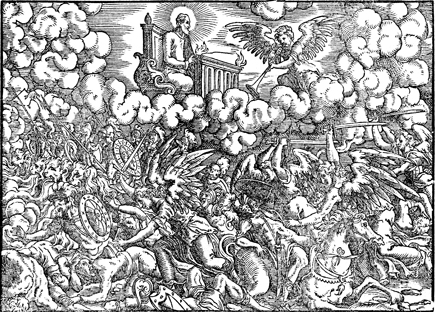 Description: An angel sounds the sixth trumpet and causes the attack of an army of angels and lion-like horses.