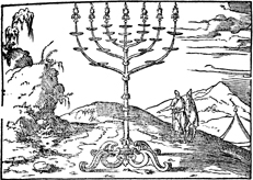 Description: Lampstand with branches and seven bowls made to look like almond blossoms.