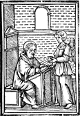 Description: Saint Matthew writes his gospel with his attribute, the angel, nearby.