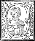 Description: An initial letter O with a man.