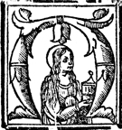 Description: An initial letter N featuring Mary Magdalene holding her attribute, an alabaster box.