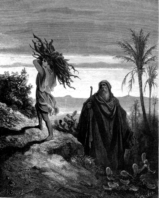 Description: Abraham walks with Isaac toward Moriah, as Isaac carries the wood for the sacrifice and Abraham carries the knife and the fire. The artist, Gustave Doré (1832-1883), has placed his signature in the lower left corner of the woodcut, and the engraver’s signature, Charles Laplante (d. 1903), is located in the lower right corner.