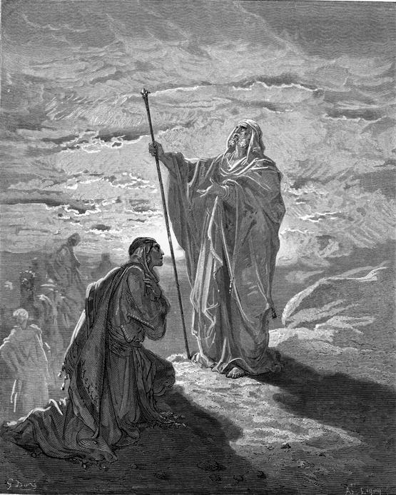 Description: Samuel anoints Saul King of Israel. The artist, Gustave Doré (1832-1883), has placed his signature at the lower left of the woodcut, and the engraver’s signature, A. Ligny, is located at the lower right.