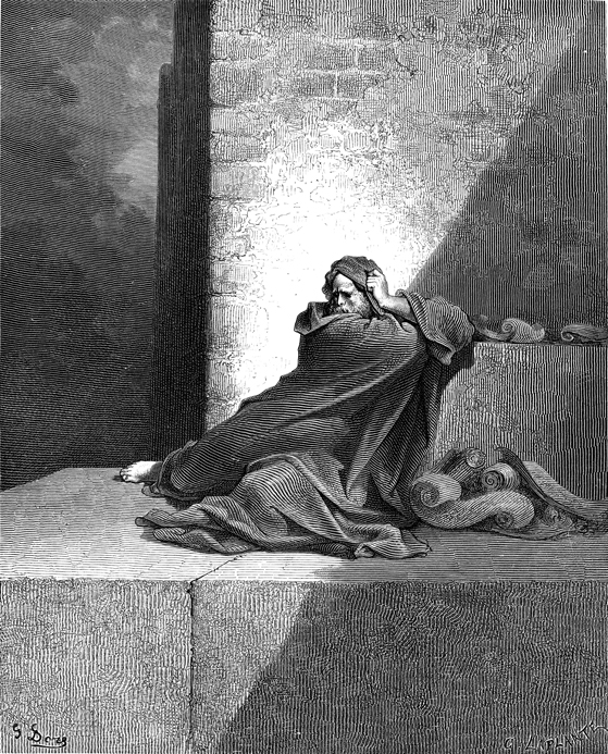 Description: A depiction of the prophet Baruch. The artist, Gustave Doré (1832-1883), has placed his signature at the lower left of the woodcut, and the engraver’s signature, Charles Laplante (d. 1903), is located at the lower right.