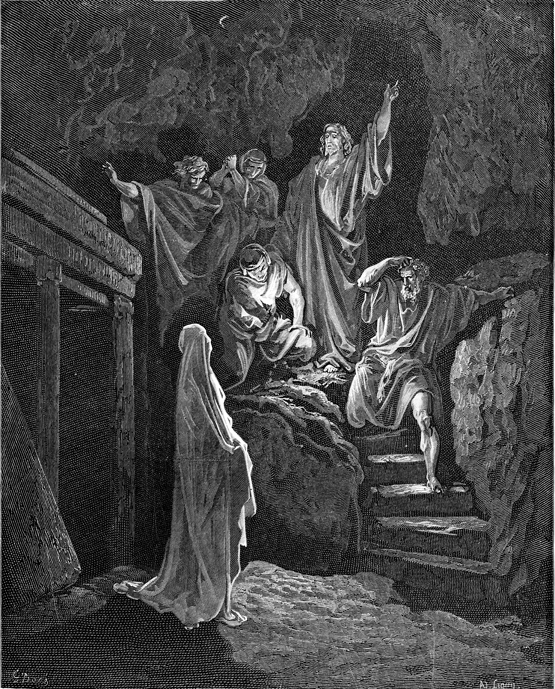 Description: As a crowd watches in amazement, Jesus raises Lazarus, now dead four days. The artist, Gustave Doré (1832-1883), has placed his signature at the lower left of the woodcut, and the engraver’s signature, A. Ligny, is located at the lower right.