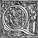 Description: An initial letter Q with the Greek philosopher Diogenes and the Greek philosopher and pupil of Socrates, Aristippus.