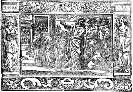Description: In the background, Jesus heals the woman with the issue of blood who touches his cloak. In the foreground, Jairus asks Jesus to heal his daughter.