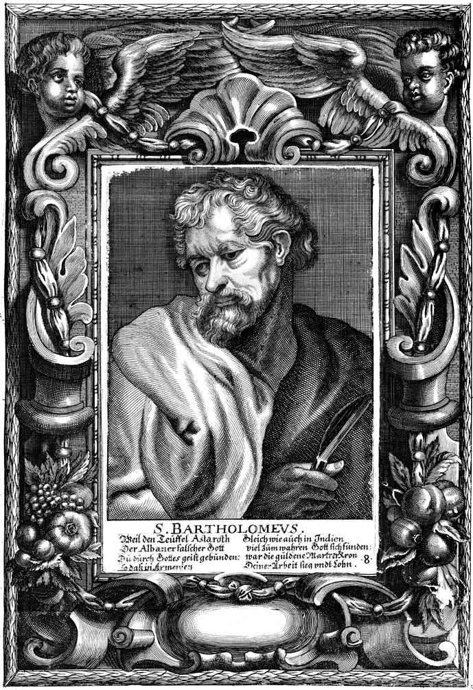 Description: The Apostle Bartholomew holding a knife, the instrument of his martyrdom.