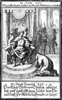 Description: The wise woman of Tekoa convinces David to allow Absalom to return.