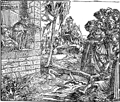 Description: As David looks down from a palace balcony, Bathsheba bathes in a pool, accompanied by her attendants.