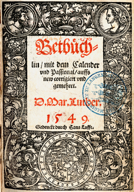 Book Title: Betbüchlin : mit dem Calender vnd Passional, auffs new corrigiert vnd gemehret / D. Mar. Luther
