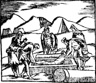 Description: Isaac and Ishmael lower Abraham’s body into a sarcophagus in the cave of Machpelah next to his wife Sarah.