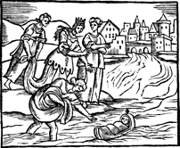 Description: The daughter of Pharaoh finds Moses in a papyrus basket along the riverbank.
