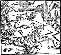 Description: Samson slays 1,000 Philistines with the jawbone of an ass.