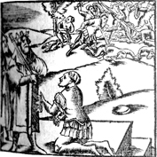 Description: David learns of Saul's death from an Amalekite as Saul falls on his own sword to avoid being captured by the Philistines in the background.