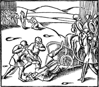 Description: Antiochus IV Epiphanes falls from his chariot and dies fleeing from battle.