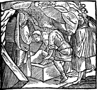 Description: Jesus is buried by Joseph of Arimathea and Nicodemus.