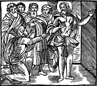 Description: Jesus appears to the disciples and points out his wounds to Thomas.