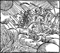 Description: A rendering of the four horsemen of the apocalypse (seals 1-4).
