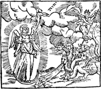 Description: The woman’s baby is saved from the beast upon his birth, and the dragon is defeated by angels.