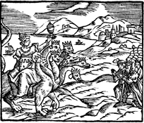 Description: The whore of Babylon rides the beast with cup in hand, while being worshiped by the kings of the earth.
