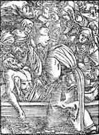 Description: Joseph of Arimathea and Nicodemus bury Jesus in a tomb.
