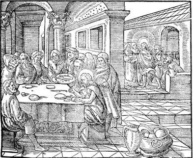 Description: A depiction of Jesus eating with the Gentiles and Tax Collectors.