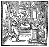 Description: The angel Gabriel visits Mary and announces that she will give birth to Jesus.