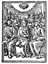 Description: The Holy Spirit comes down upon the disciples in the form of a dove on Pentecost.