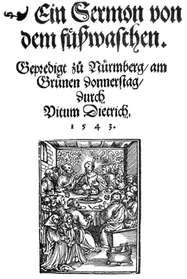Book Title: Ein Sermon von dem füsswaschen : Gepredigt zuo Nürmberg, am Grünen donnerstag / durch Vitum Dietrich. 1543