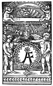Description: The printer's device of Amandus Farckall held by putti.