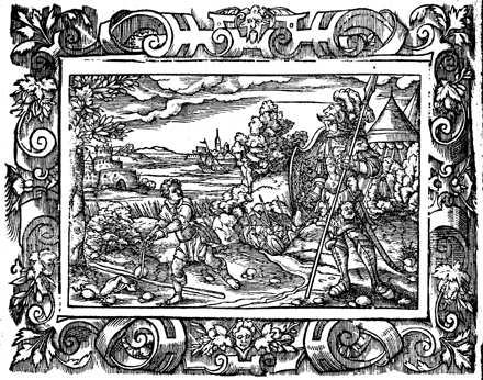 Description: As Noah and his family gather in worship after the flood, God places a rainbow in the sky as a sign of his pledge to never again destroy the earth by flood. Also, Ham dishonors Noah by pointing out his nakedness, but Shem and Japheth cover their father with a sheet. The artist, Virgil Solis (1514-1562), has placed his monogram in the lower right corner of the woodcut.
