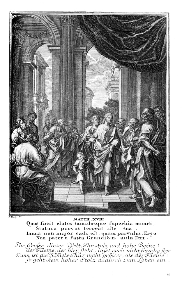 Description: Jesus teaches his disciples that the greatest in his kingdom are those who become like little children.