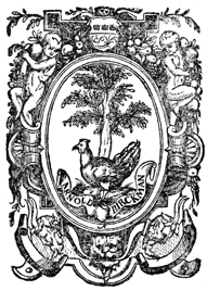 Description: The printer's device of Arnold Birckmann (fl. 1530-1542) is used for this work printed by one of his heirs and features a hen standing before a birch tree (=Birke), suggesting a wordplay on the printer's surname.