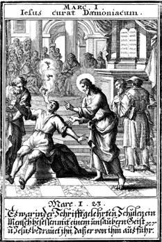 Description: Jesus casts a demon out of a man in a synagogue in Capernaum.