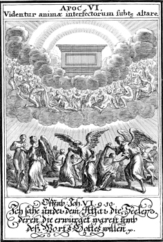 Description: Upon the opening of the fifth seal, angels give the saints under the altar white robes.