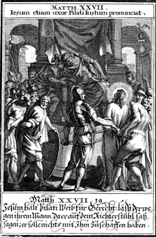 Description: A servant brings a message to Pilate from his wife during the trial of Jesus.