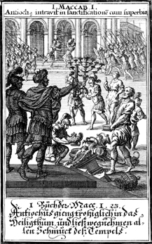 Description: Antiochus IV Epiphanes loots the temple in Jerusalem.
