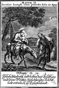 Description: Joseph, Mary, and Jesus go to Egypt.