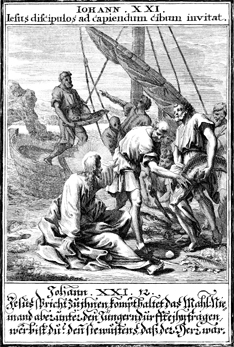 Description: Jesus calls the disciples to come and eat breakfast.