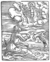 Description: With his vision of Jesus in the heavens, John writes the book of Revelation from his exile on the island of Patmos. His attribute, the eagle, is positioned nearby.